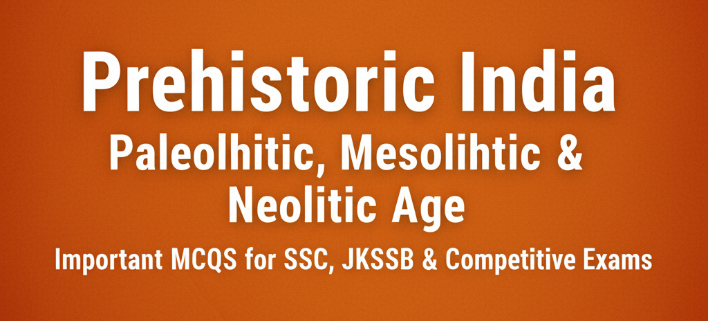 Prehistoric India: Palaeolithic, Mesolithic and Neolithic age important MCQs for SSC JKSSB and competitive exams